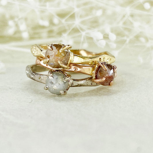 14k Tri Gold Rose Cut Diamond Ring Stackers