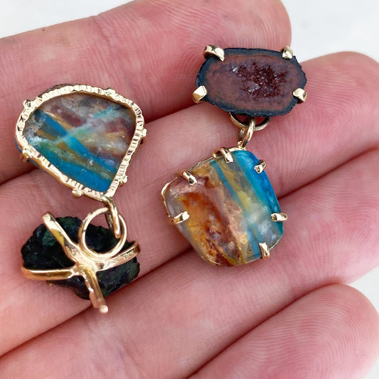 14k Yellow Gold, Red Geode & Peruvian Opal Earrings