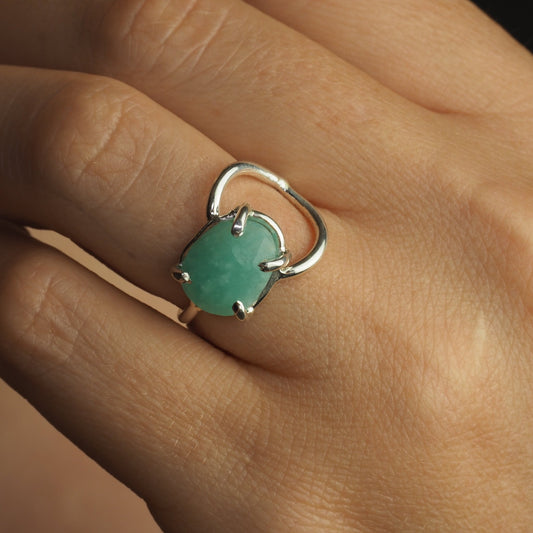 Sterling Silver Larimar Ring - Art Nouveau Inspired Flowing Design