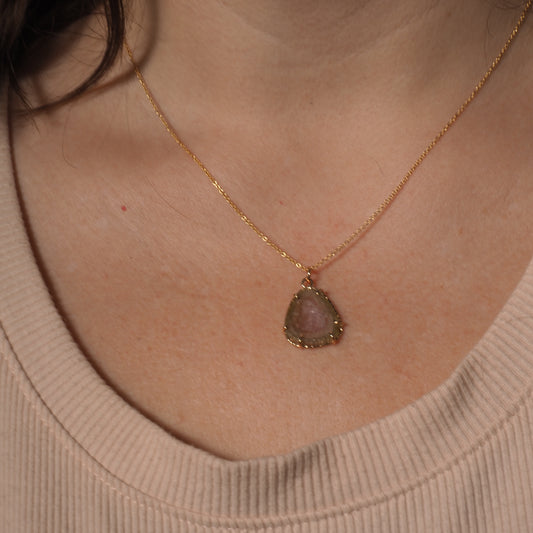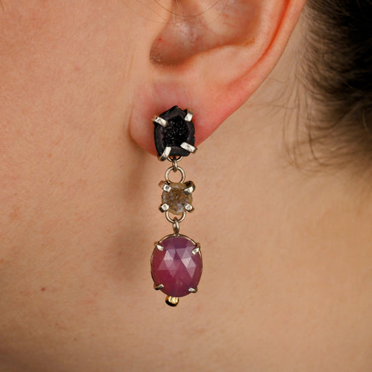 14K Rose Gold Spotted Rose Quartz Chain Link Earrings