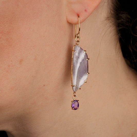14K Yellow Gold Dendrite Agate Drop Earrings - Natural Landscape Paintings