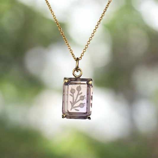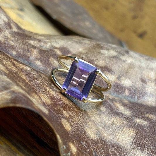 Rectangular Rose Cut Amethyst Ring - Sterling Silver