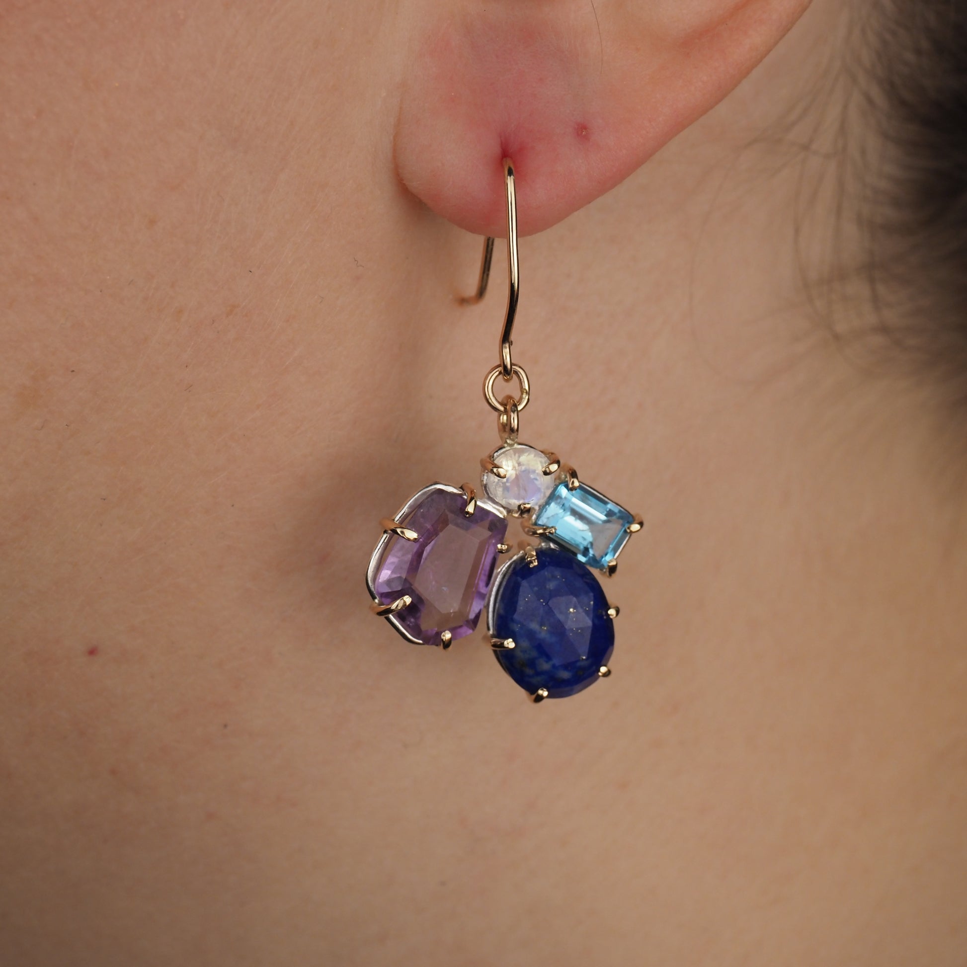 The entire piece is set in solid 14k yellow gold with sterling silver stone seats to brighten each gem without changing their character. The earrings measure about 1.5 inches long, making them a perfect everyday-statement size: refined, noticeable, but incredibly easy and comfortable to wear.